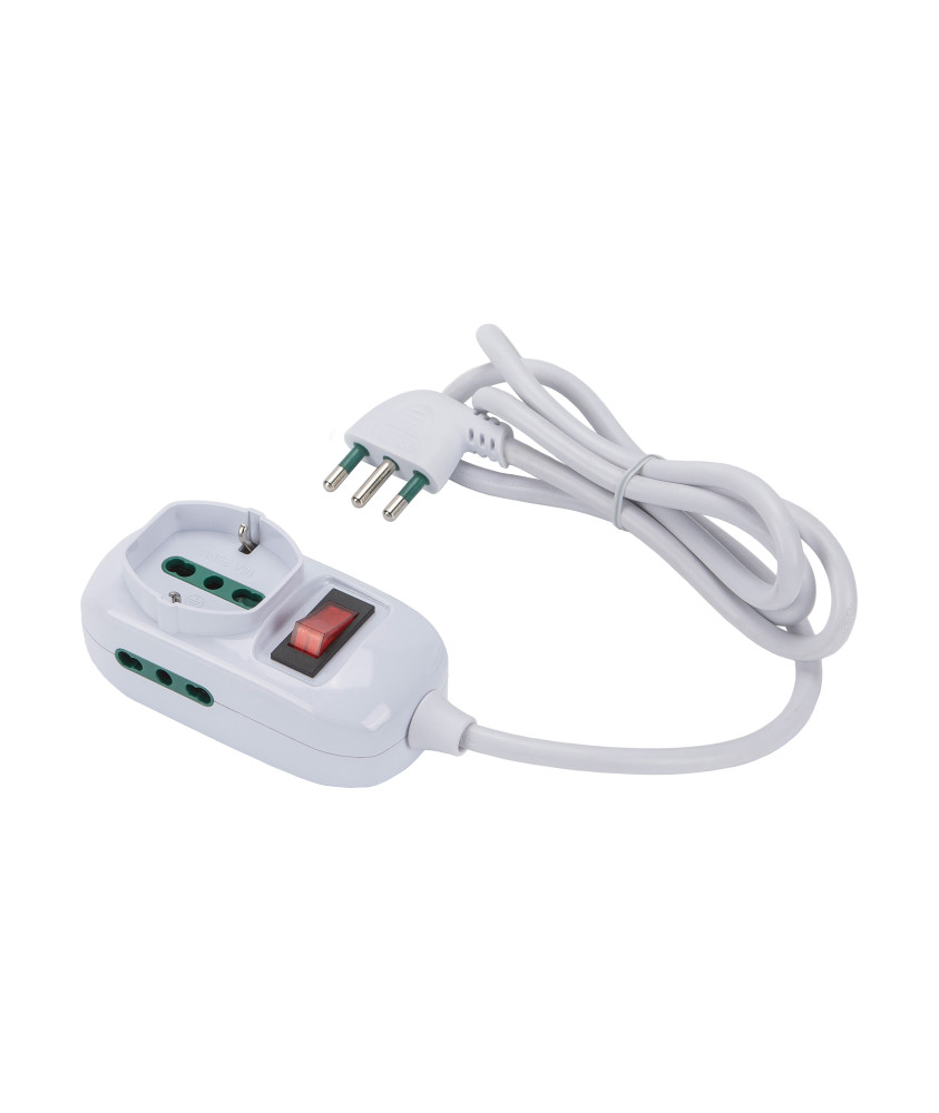 Con cavo 3G0,75 H05VV-F1 da Mt. 1,2, presa bipasso italo/tedesca 2P+T 16A in testa, 2 prese bipasso italiane 2P+T 16A laterali, spina a squadra itali...