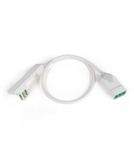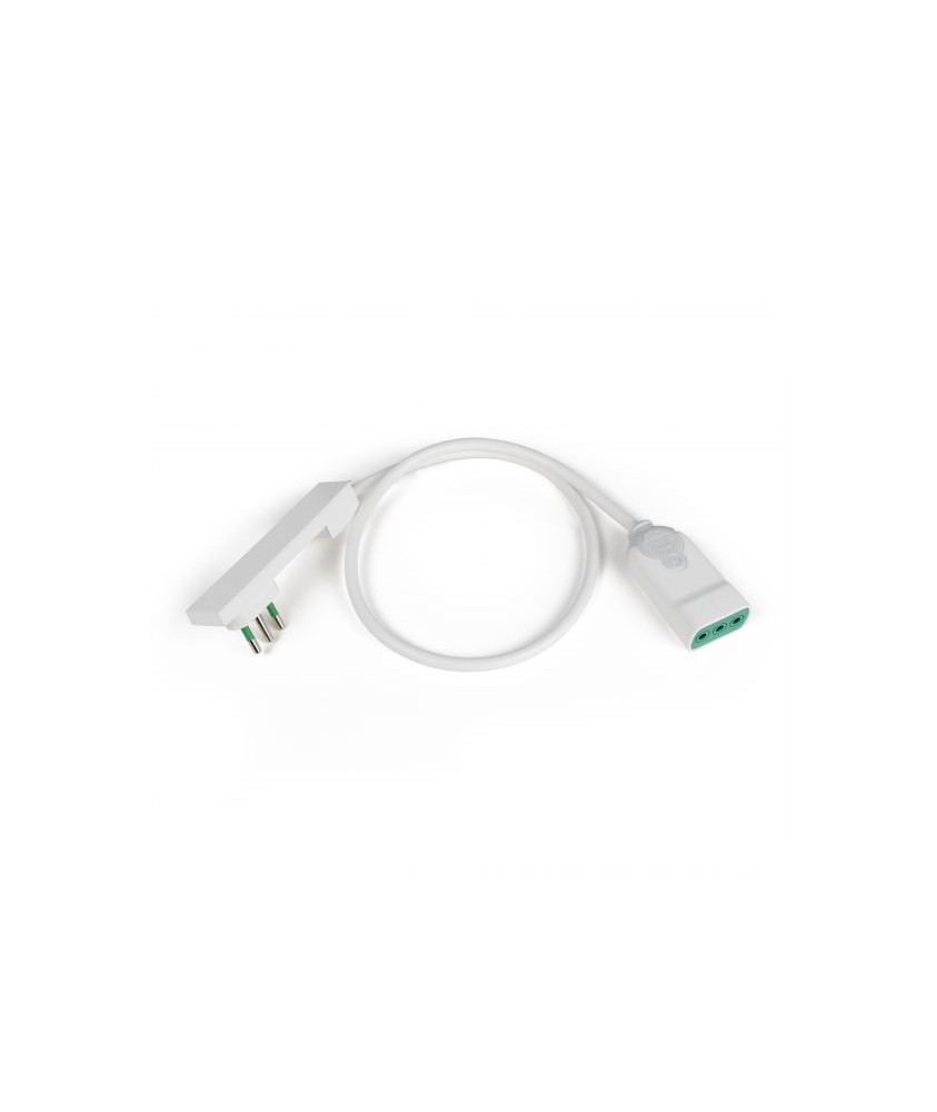 Con cavo 3G0,75 H05VV-F da Mt. 1, spina a squadra italiana 2P+T 10A e presa italiana 2P+T 10A. Colore bianco. In sacchetto appendibile.
