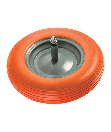 RUOTA PU ANTIFORO X CARRIOLA HAND • MM 370X80 DISCO METALLO MOZZO MM 260 + ASSE