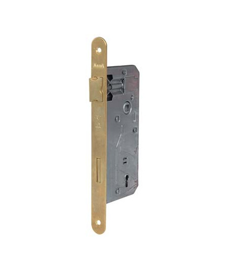 Scrocco reversibile, con richiamo quadro maniglia Mm. 8. Chiusura con catenaccio a 2 mandate. Frontale da Mm. 22x240. Altezza scatola Mm. 168,5. In dotazione: 1 chiave patent.