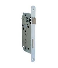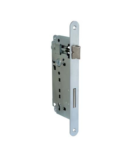 Scrocco reversibile, con richiamo quadro maniglia Mm. 8. Chiusura con catenaccio a 2 mandate. Frontale da Mm. 22x240. Altezza scatola Mm. 168,5. In dotazione: 1 chiave patent.