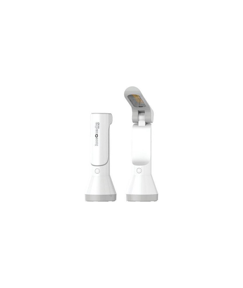 In ABS. Ricaricabile con batteria al litio da Volt 3,7 Mah 1200. Doppia fonte luminosa: 1 led centrale Watt 3 e 14 led a scomparsa Watt 0,1 SMD 2835....