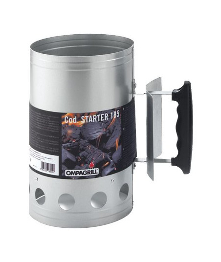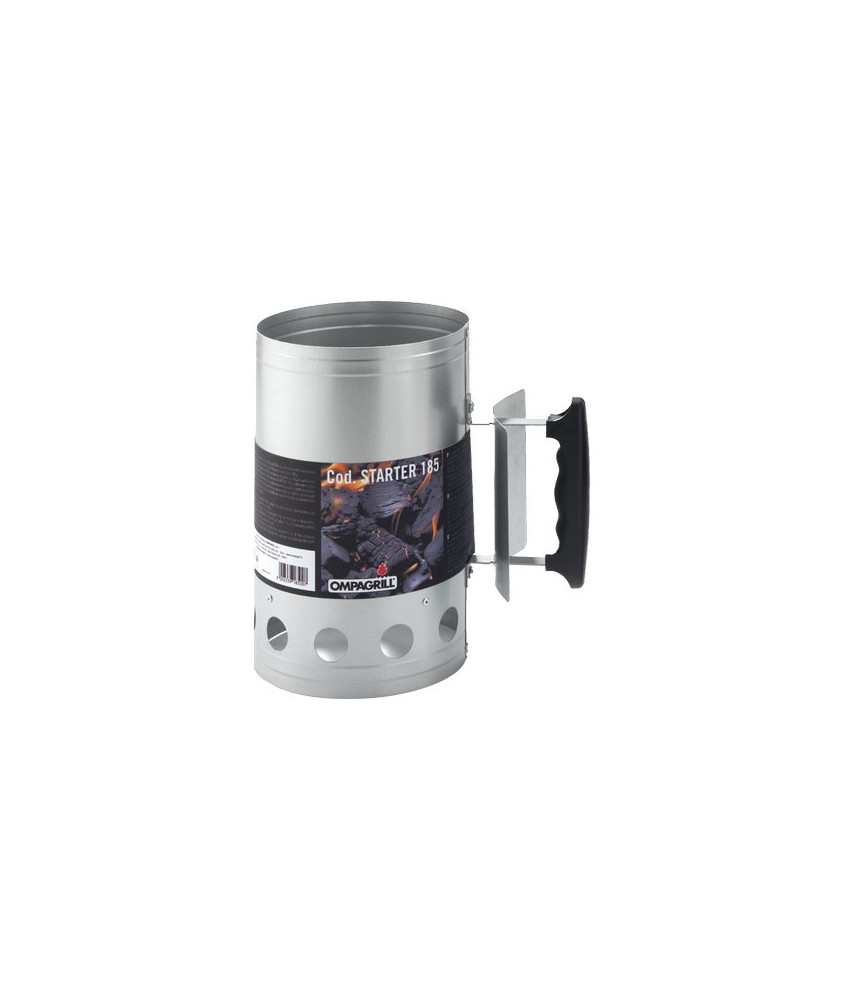 In acciaio alluminato e manico con impugnatura in plastica. Permette un'accensione facile e veloce della carbonella.