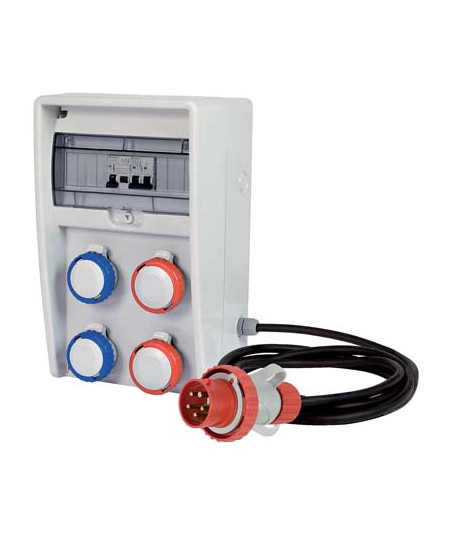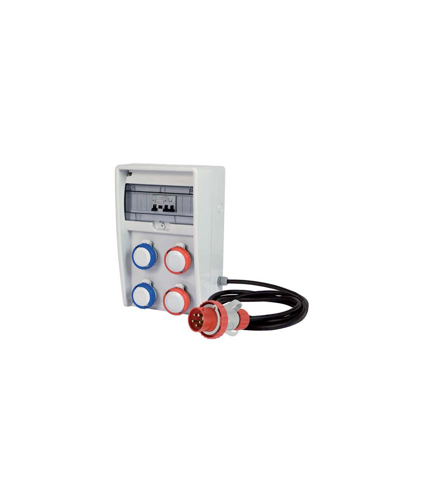 Cavo da Mt. 4, sezione Mmq. 5x2,5, tipo H07RN-F. Spina 3P+N+T 16A 380V IP67. Con 2 prese 2P+T 16A 220V IP67 e 2 prese 3P+T 16A 380V IP67. Protezioni:...