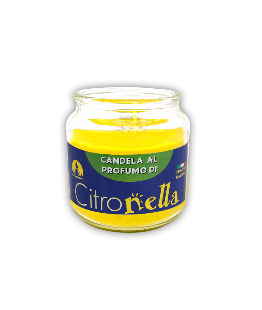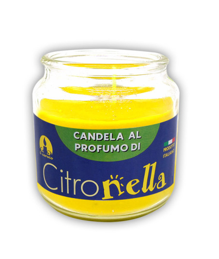 Candela in giara di vetro prufumata alla citronella, Made in Italy, diametro 10 cm, altezza 13 cm