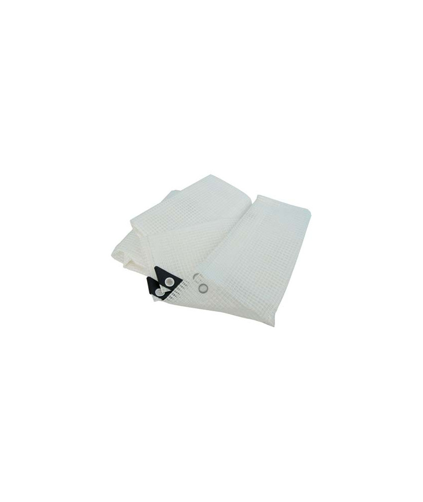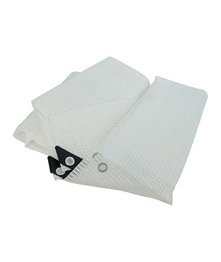 In polietilene a trama retinata e trasparente con doppio strato stabilizzato UV. Angoli occhiellati e rinforzati in PVC. Occhielli in alluminio ad ogni metro. Peso di Gr./Mq. 160 circa.