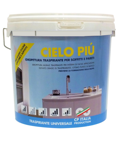 dropittura traspirante vinil-acrilica per interni dotata di buona copertura. Ideale per soffitti e pareti di bagni, cucine e cantine.Resa 8-10 mq/l Confezione da 5 l Colore Bianco