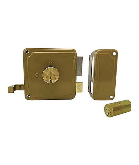 Con doppio cilindro fisso interno ed esterno Mm. 50. Scrocco. Tirante. Chiusura con catenaccio a 2 mandate. Altezza scatola e bocchetta Mm. 85. In ac...