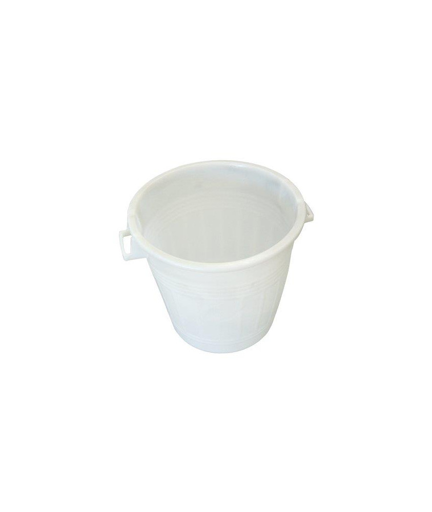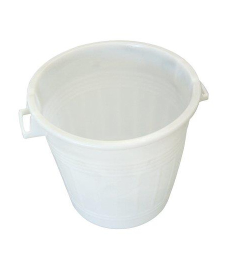 In polietilene bianco. Con fondo a spigoli vivi e manici laterali.